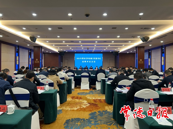 昨日上午,2021年度市直机关党委书记述职评议会议在共和酒店召开。会上,市人大常委会、市委政法委等5个单位机关党委书记依次作口头述职,其他31个单位机关党委书记作书面述职。