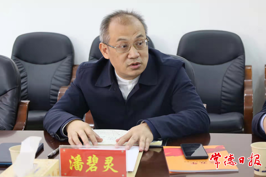 12月7日,全国政协常委、民进湖南省委会主委、湖南省生态环境厅副厅长潘碧灵来常德开展走访调研。市委副书记、市委统战部部长陈华,市政协副主席张力参加调研。