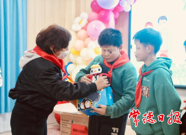 12月15日下午,致公党省委会常委、省妇联副主席卢妹香带领“爱心妈妈”“爱心爸爸”们来到武陵区丹洲乡中心小学,为50名困境留守儿童送上毛衣、娃娃等慰问品。