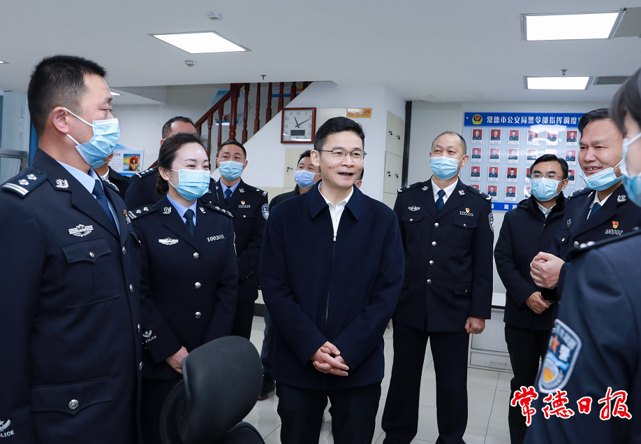 在市公安局,曹志强看望慰问了值班值守民警,并通过他们向全市广大公安民警拜年。在情报指挥中心,曹志强详细了解了春节期间安保维稳工作情况,并通过视频检查了万达广场巡逻执勤点、宏大路口交警执勤点、太阳山收费站春运防疫执勤点的值守工作情况。曹志强说,常德公安是一支忠诚于党和人民,时刻守护着群众安宁,能打硬仗胜仗的队伍。过去的一年,全市公安系统取得了一系列优异成绩,希望在新的一年,大家继续保持好优良传统,守护好老百姓幸福安康,为全市经济社会发展营造更加安全稳定和谐的环境。