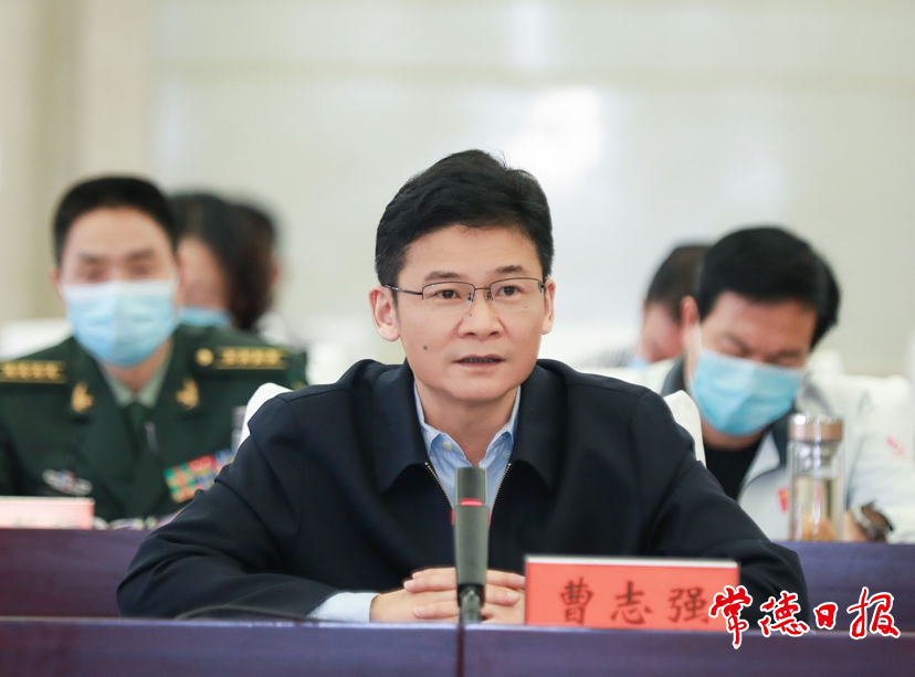 曹志强强调,要扎实推动全国两会精神在常德落实落地。全市各级各部门要按照省里的部署要求,结合工作实际,找准贯彻落实全国两会精神的切入口和突破口,大力推进“八项重点工作”、实施六大专项行动,奋力开创各项事业发展新局面。要着力抓好全国两会精神学习贯彻,把学习宣传贯彻全国两会精神特别是习近平总书记重要讲话精神,作为当前的重要政治任务来抓,认真安排、精心组织,迅速掀起学习热潮。要着力做好“六稳”“六保”工作,坚持稳字当头、稳中求进,稳市场主体、保民生、防风险。要着力发展实体经济,以培育产业为主攻方向,推进科技创新,促进产业升级,抓好项目建设,推动经济高质量发展。要着力优化营商环境,坚持把优化营商环境作为“生命线工程”来抓,努力打造全省领先、全国一流的营商环境。要着力创建“五好”园区,坚持“五好”园区的主攻方向、主要目标不动摇,进一步明确园区功能定位,全面提升园区经济贡献度和质量效益。要着力推进乡村振兴,守住保障国家粮食安全和不发生规模性返贫两条底线,做好乡村发展、乡村建设、乡村治理三项重点工作。要着力维护安全稳定,时刻绷紧疫情防控这根弦,坚持“外防输入、内防反弹”总策略、“动态清零”总方针不放松不动摇,全面落实“四早”要求,压紧压实“四方”责任,坚决守住不出现疫情规模性反弹的底线。要着力改进干部作风,以“闯”的精神、“创”的劲头、“干”的作风抓好全年各项工作任务。