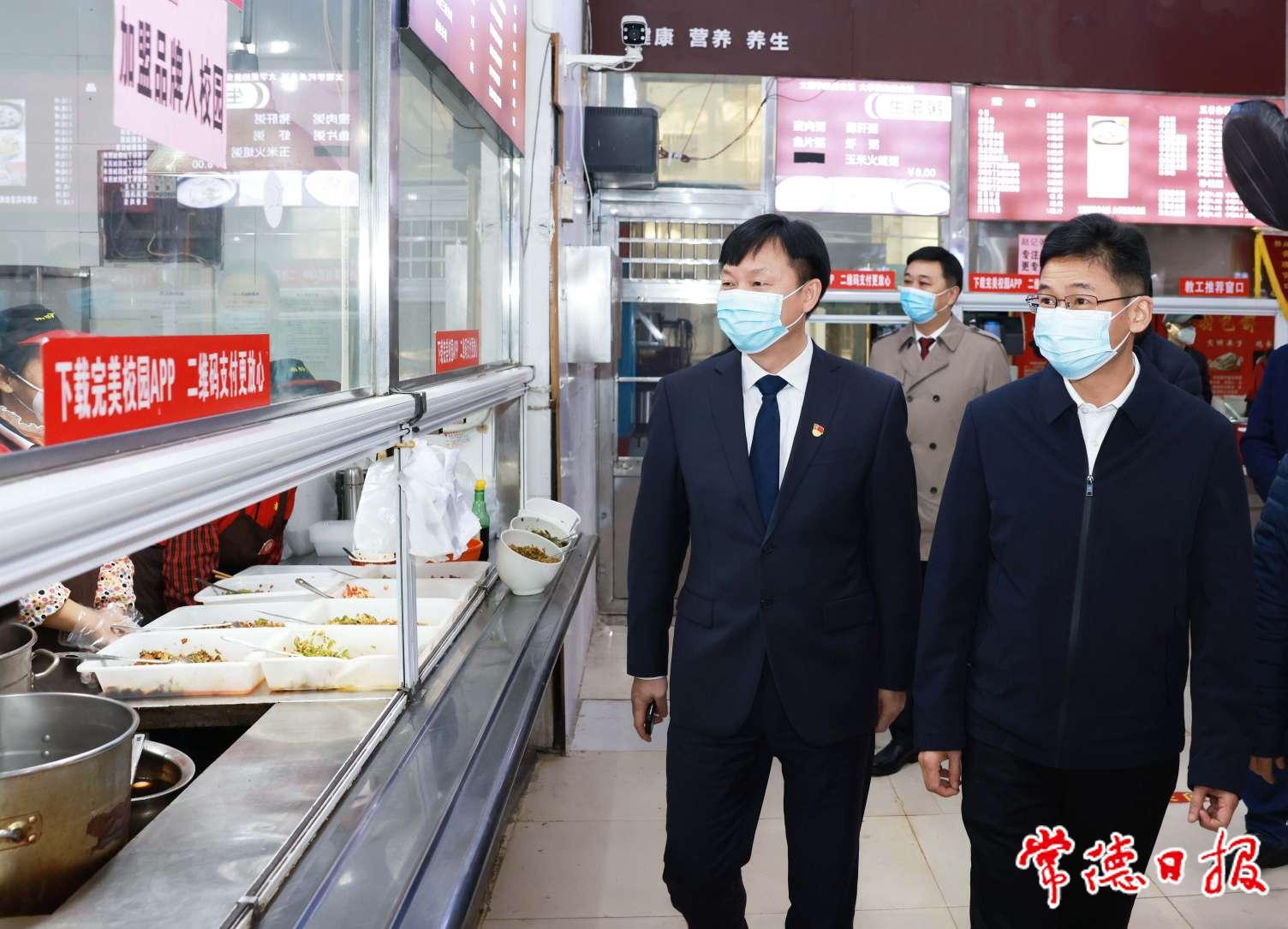 曹志强(右一)在湖南文理学院督导检查食品安全工作