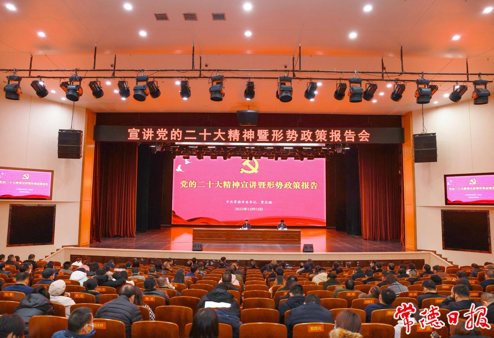 市委常委、市委宣传部部长彭晛丹,市委常委、市委秘书长傅勇,湖南文理学院党委书记龙献忠,湖南文理学院党委副书记、校长刘宇文参加宣讲党的二十大精神暨形势政策报告会。