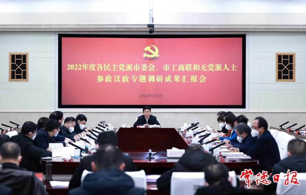 会上,各民主党派市委会、市工商联、市知联会主要负责人先后发言,围绕优化营商环境助力“五好”园区建设、发挥高等教育优势作用、改善科技成果转化机制、持续推动县域经济高质量发展、加大农产品区域公用品牌建设力度、助推文旅体产业高质量发展、促进我市“农民工”稳定就业、年轻一代民营企业家成长需求、常德经济动植物地方特色品种资源保护等主题,积极建言献策。
