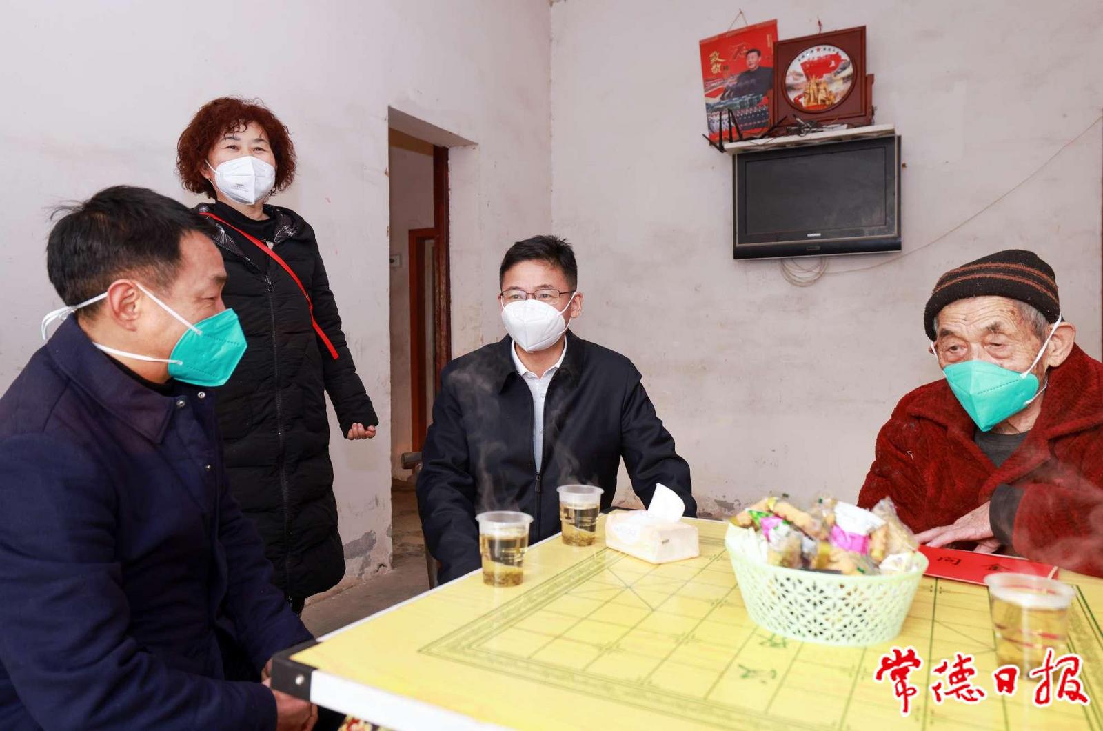 “快过年了,给你们拜个早年,希望你们过一个热闹的春节。”在武陵区丹洲乡明月社区,一到优抚对象张德安家,曹志强就握住他的手嘘寒问暖,关切询问他的身体健康状况、家庭情况,向他表示崇高敬意,希望他保重身体、健康长寿;要求有关部门认真落实好各项优抚政策,积极帮助他解决实际困难。在丹洲乡敬老院,曹志强详细了解他们的饮食起居和生活医疗保障等情况,叮嘱工作人员加强日常管理,做好疫情防控等工作,耐心细致地服务好每一位老人,照顾好老人们的身体,让老人们的晚年生活更加舒心、幸福。
