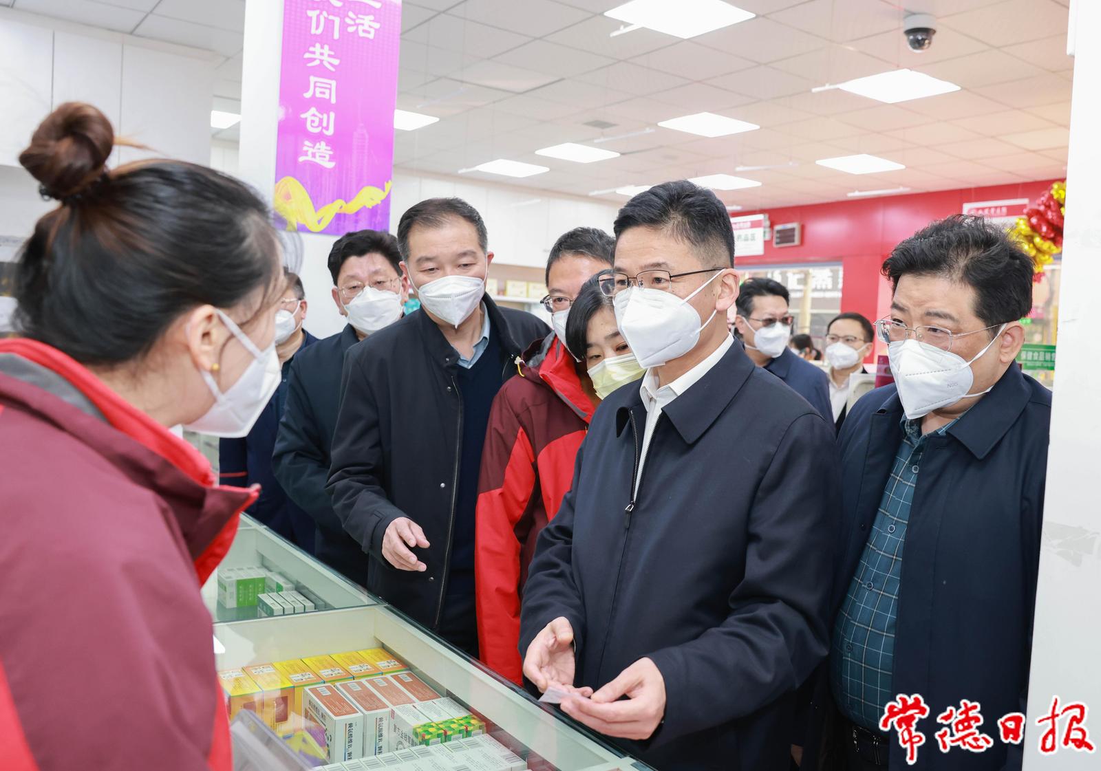 曹志强在湖南九芝堂零售连锁有限公司常德宏大药店调研督导药品保供工作