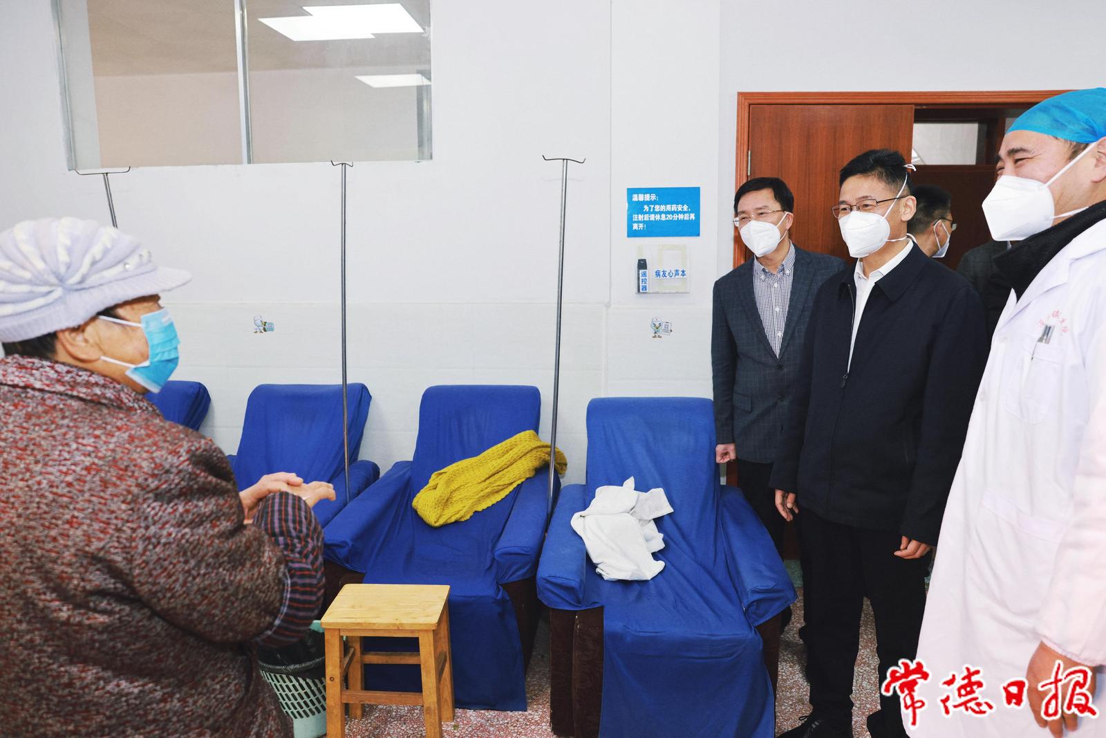 曹志强先后到市第一人民医院、湖南九芝堂零售连锁有限公司常德宏大药店、穿紫河街道社区卫生服务中心、第四人民医院(北区)、市社会福利院、鼎城区灌溪镇卫生院开展调研督导。在城乡各级医疗卫生机构,曹志强深入门诊、住院区、重症监护区了解新冠病毒感染患者的医疗救治工作、县域医共体建设情况、农村和社区医疗健康服务管理工作,向坚守在防疫一线的医护人员表达慰问和感谢,并叮嘱住院患者要注意补充营养,积极配合治疗,争取早日康复。在湖南九芝堂零售连锁有限公司常德宏大药店,曹志强详细询问了退烧、止咳等药品和各类口罩的供应能力和售价水平。在市社会福利院,曹志强对该院的疫情防控措施和服务对象感染救治、隔离管理情况进行了检查。