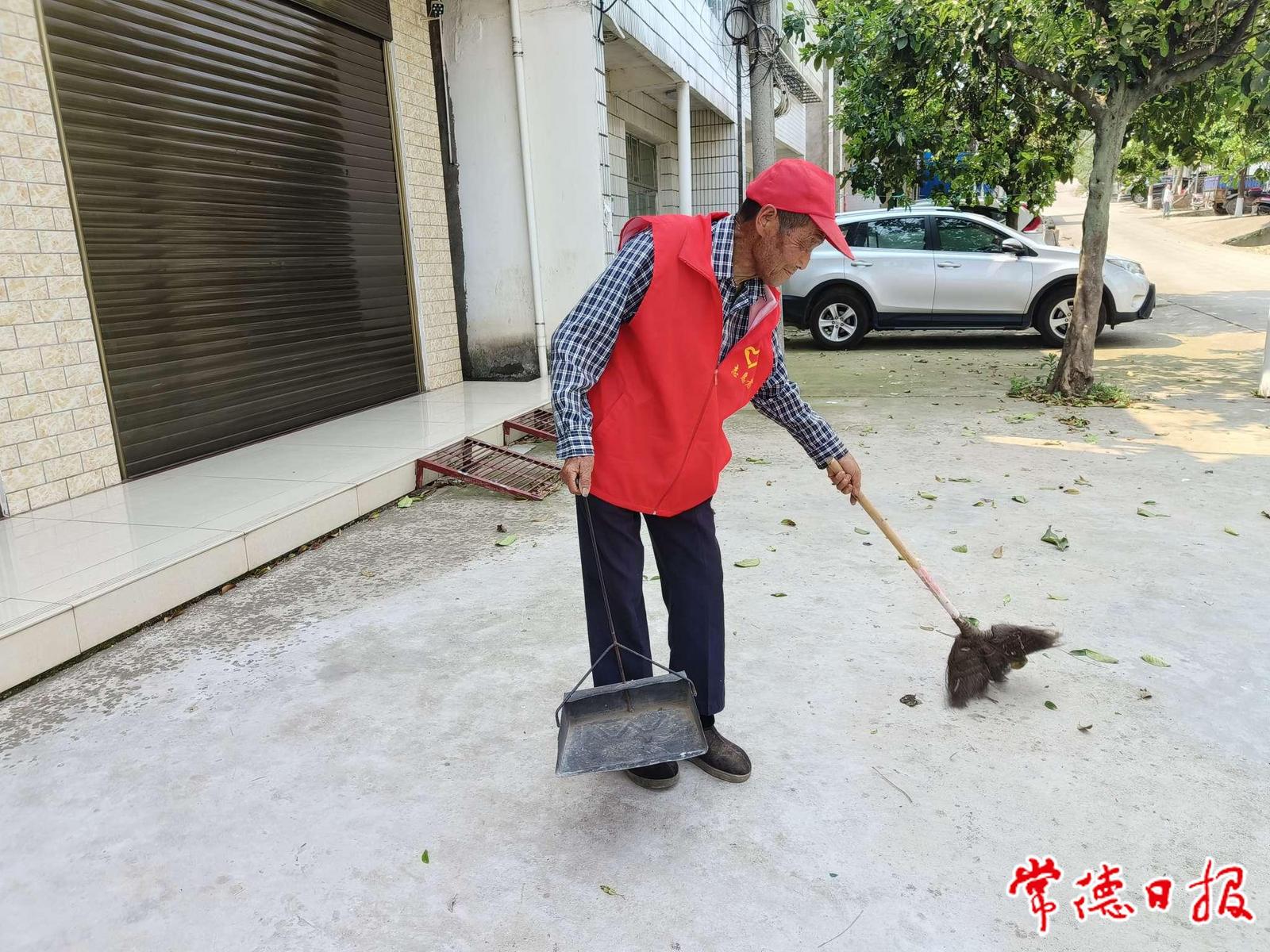 今年79岁的毛善枝,是澧县盐井镇豹子岭村村民。每天清晨,当村民们还沉浸在梦乡之时,毛善枝已经吃完了早饭,带上扫把、簸箕,来到盐宝路上开始义务清扫。十几年来,不分晴天雨天,不论严寒酷暑,他从未缺席过一次。每次村里开展志愿服务活动,他还会穿上红马甲,与志愿者一起对公共区域进行卫生大扫除,并劝说过往的行人不要随意乱丢垃圾。在他的影响下,村民们都开始自觉维护环境卫生,并加入义务清扫的队伍。