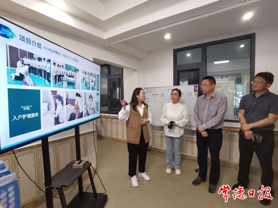 在嘉乐园寿星公寓,龚德汉详细了解了养老机构运营情况,并实地查看了消防安全设施设置和维护管理情况。在“叮咚快护”国源小区服务站,龚德汉了解到“爱颐家·叮咚快护”是一家专门为老年人提供上门养老服务的智慧养老服务中心,对他们为失能、半失能、活力老人群体提供个性化专业服务予以充分肯定。随后,龚德汉前往鼎城区江南居家养老服务中心,详细了解鼎城区智慧养老信息管理平台基本运行情况和该区养老服务基础数据。