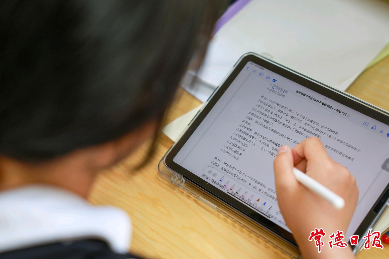 4月18日,湖南文理学院图书馆内,一名学生使用平板电脑进行阅读学习