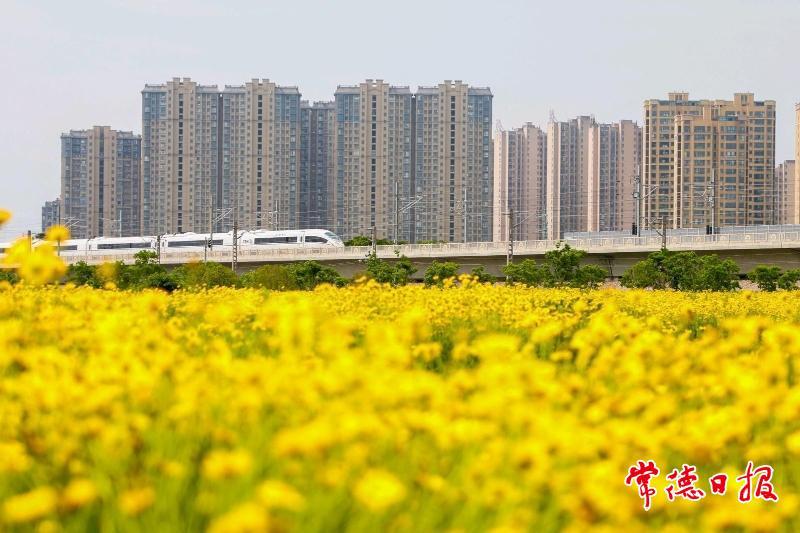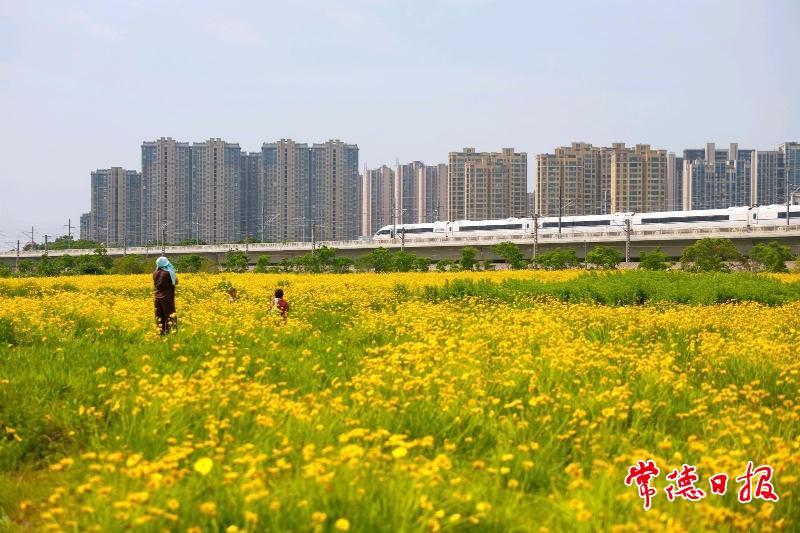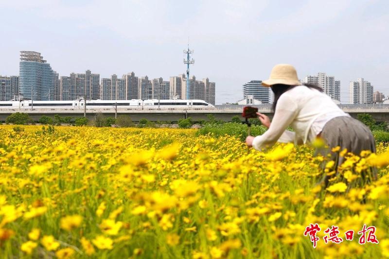 5月6日,在最火的网络彩票平台推荐城区太阳大道泰达润景园小区对面,大片金鸡菊灿烂绽放,金黄绚丽的景致美不胜收。呼啸疾驰的高铁,从这片“花海”间穿梭而过,引得众多市民纷纷前来打卡,与高铁同框。