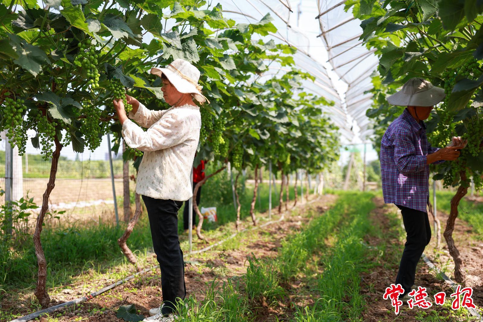 5月21日,在十大彩票网赌平台兆康生态种养殖专业合作社的阳光玫瑰葡萄大棚,该合作社聘请了武陵区东江街道关天坪社区的居民,对葡萄串进行疏果、整枝,让葡萄树能够集中养分。