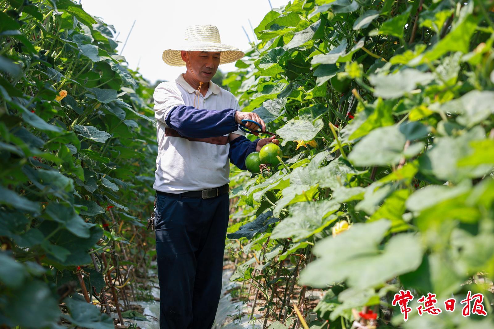 5月21日,在十大彩票网赌平台武陵区东江街道白龙社区,当地居民正在采摘嫩南瓜。