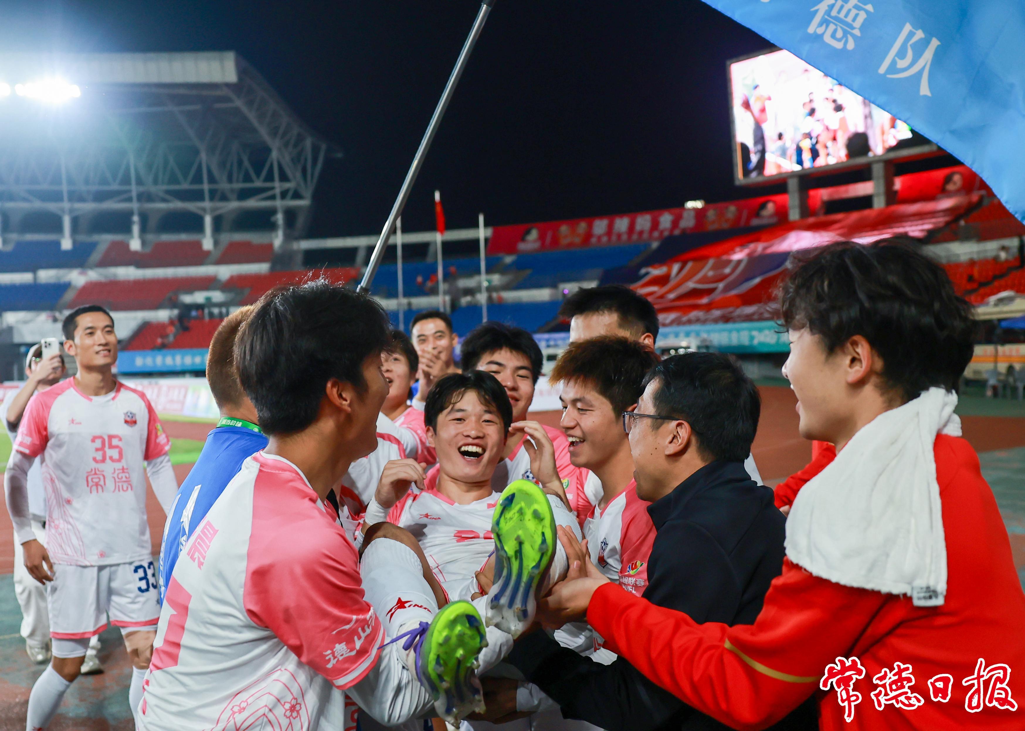终场哨响,1∶0的比分锁定,常德队队员相拥庆祝,主教练赵旭东脸上洋溢着振奋的笑容。看台上,常德球迷挥舞旗帜久久不愿离场,而娄底球迷也为两队的精彩对抗鼓掌。