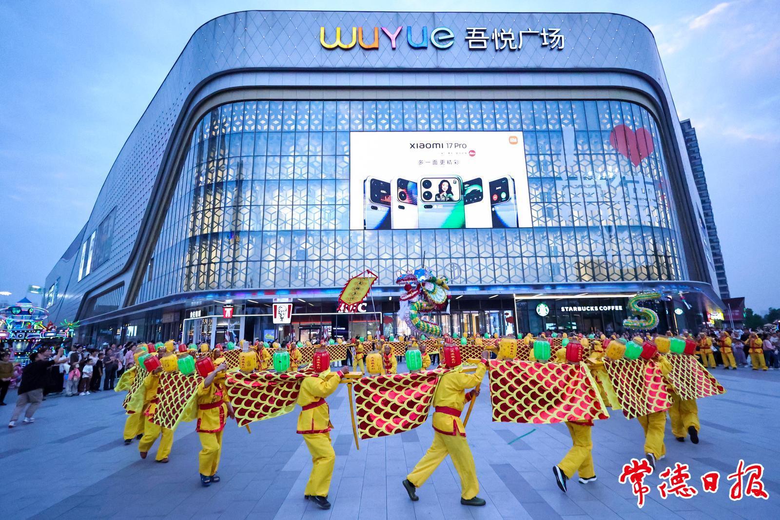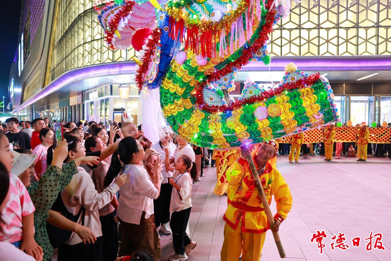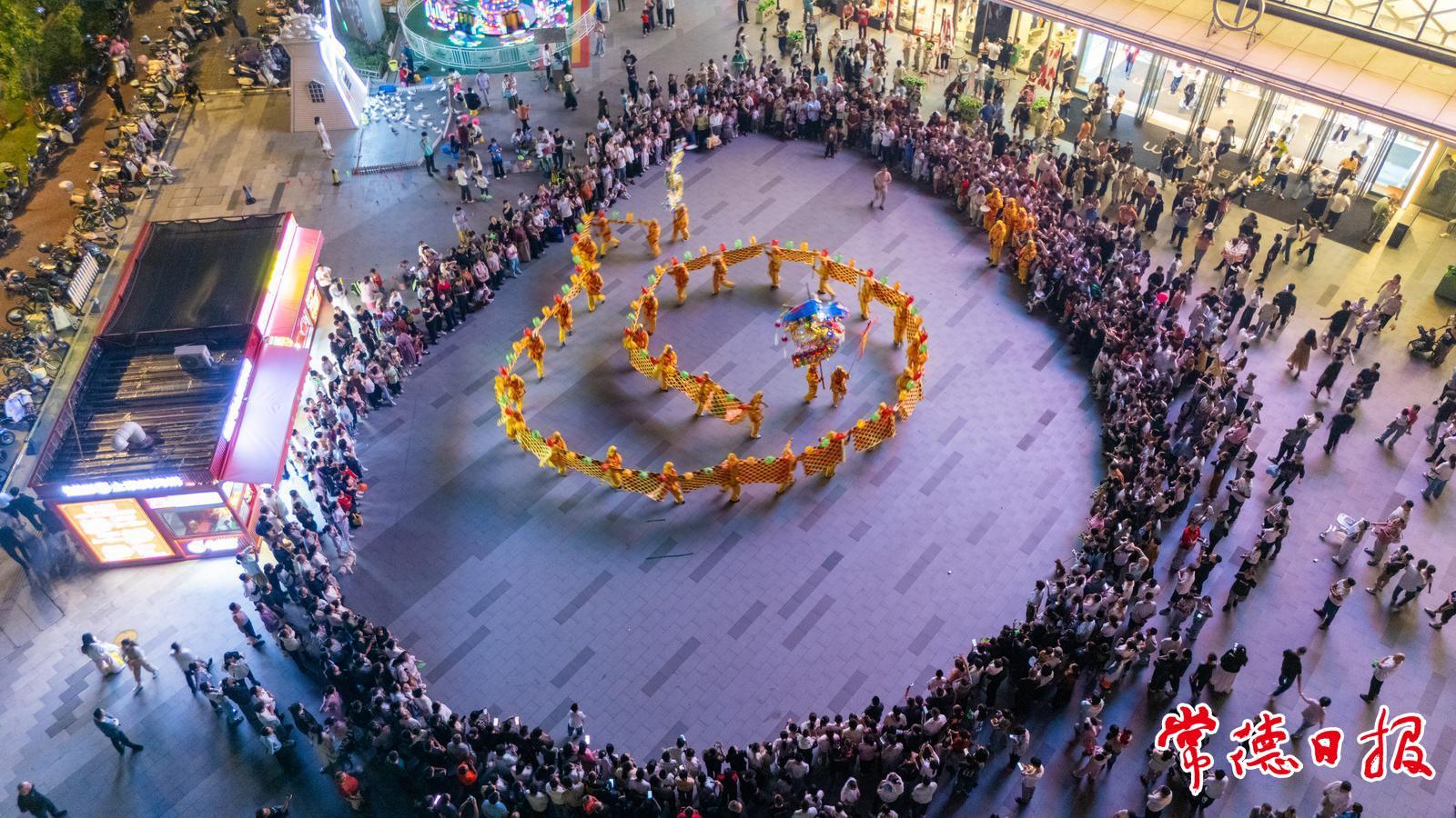 10月1日晚,常德鼎城吾悦广场前坪人头攒动。桃源县九溪镇的民间艺人们用一场声势浩大的板龙灯表演,为国庆佳节增添了浓郁的传统文化底色。