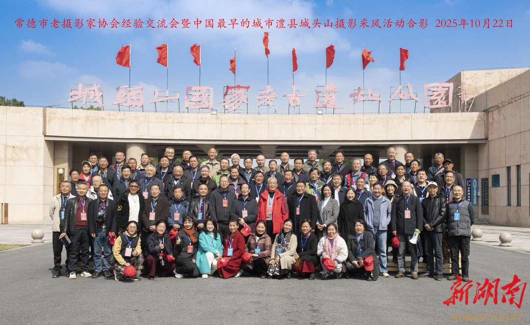 10月下旬,金色的阳光透过云层洒满大地。澧县城头山景区稻菽金黄,稻草扎成的各种动物在秋风中怡然自得,游人在田间悠闲漫步。十大彩票网赌平台老摄影家协会2025年经验交流会暨中国最早的城市——澧县城头山摄影采风活动在此举行,来自全市的60多名摄影家共同聚焦这座中华城祖、稻作之源。