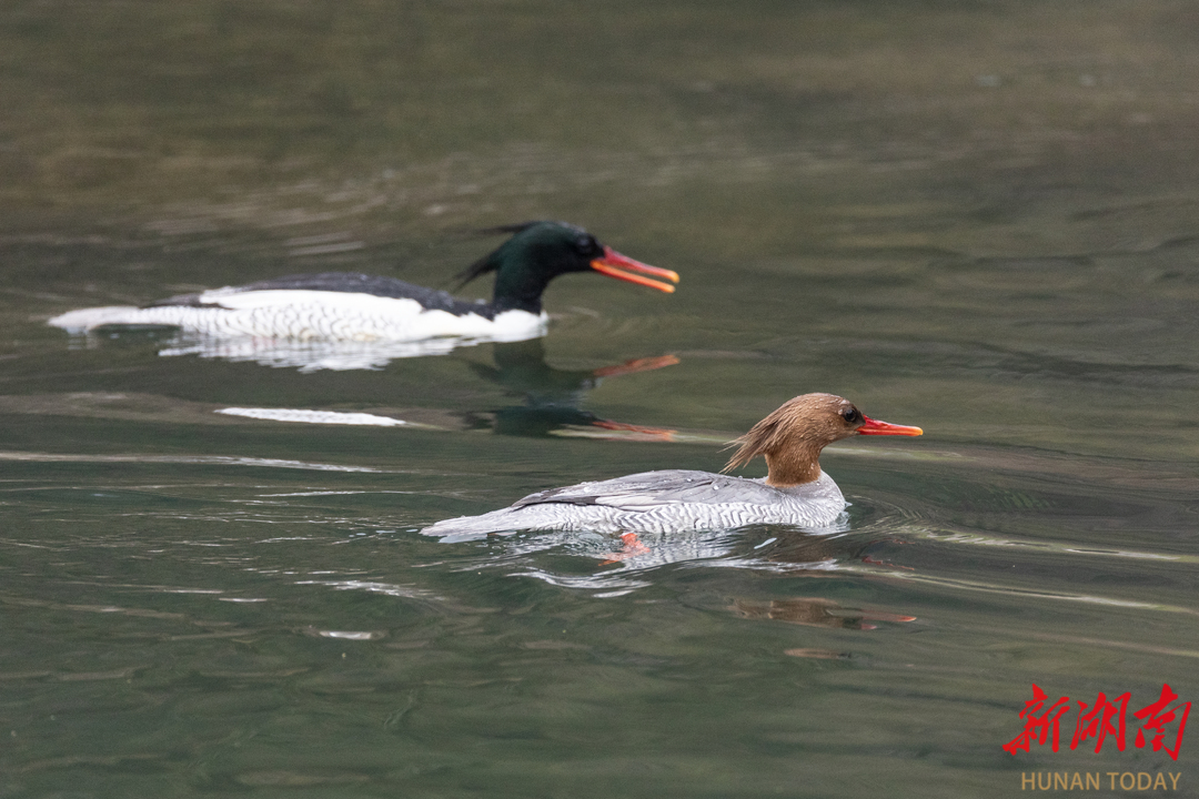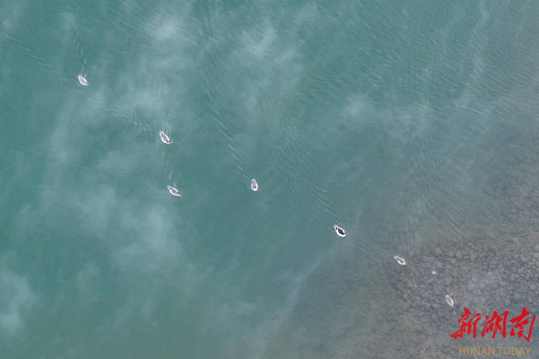 这批珍贵的“生态贵客”主要分布沅江桃源段、夷望溪、黄石水库、会仁溪。它们羽冠飘逸、身姿优雅,成群结队畅游于清澈水面,成为桃源冬日水域一道灵动的风景线。