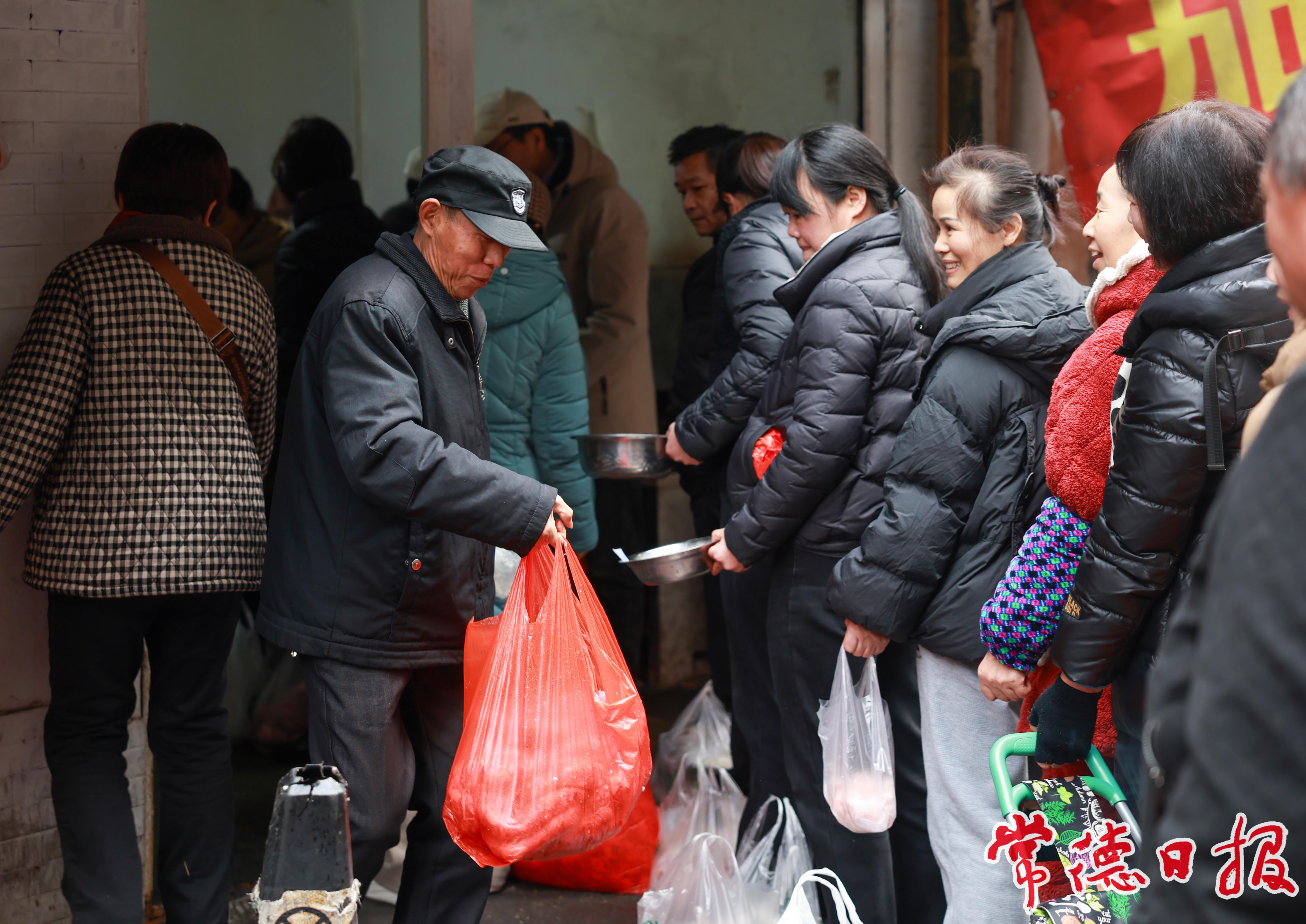 市民手里提着灌好的香肠,脸上洋溢着欢快的笑容,迎接新春的到来