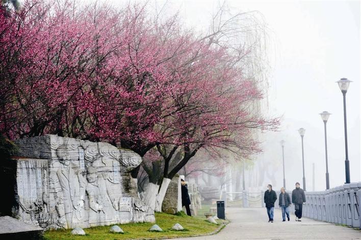二月的常德,处处可见娇梅倩影,七里桥头走一走,穿紫河畔转一转,柳叶湖边绕三圈,沅水旁的诗墙公园……