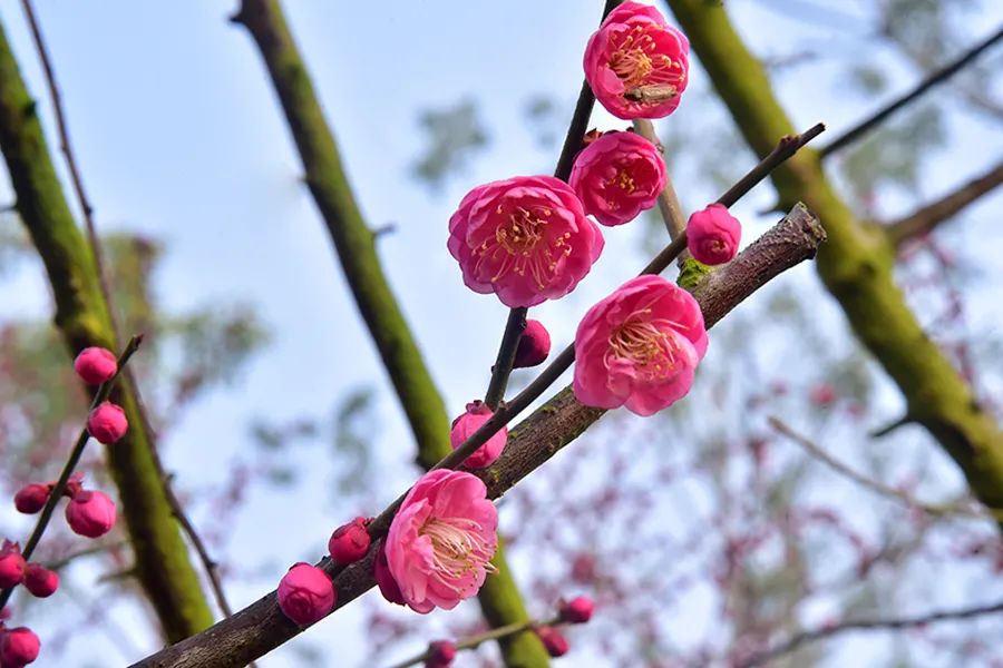 灿烂的阳光,照射在这些可爱的梅花上,给人一种赏心悦目之感!