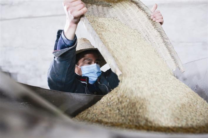 工人在鼎城区双桥坪镇农资储备仓库内选种。 本报记者 李龙 摄
