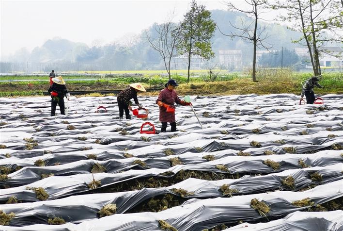 汉寿县围堤湖镇农民趁着晴好天气栽种辣椒、南瓜、甜糯玉米等经济作物。 詹远华 摄