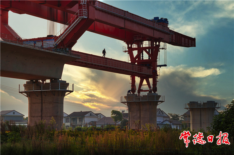 · 夕阳下的高铁修建工地 黄劲霞 摄