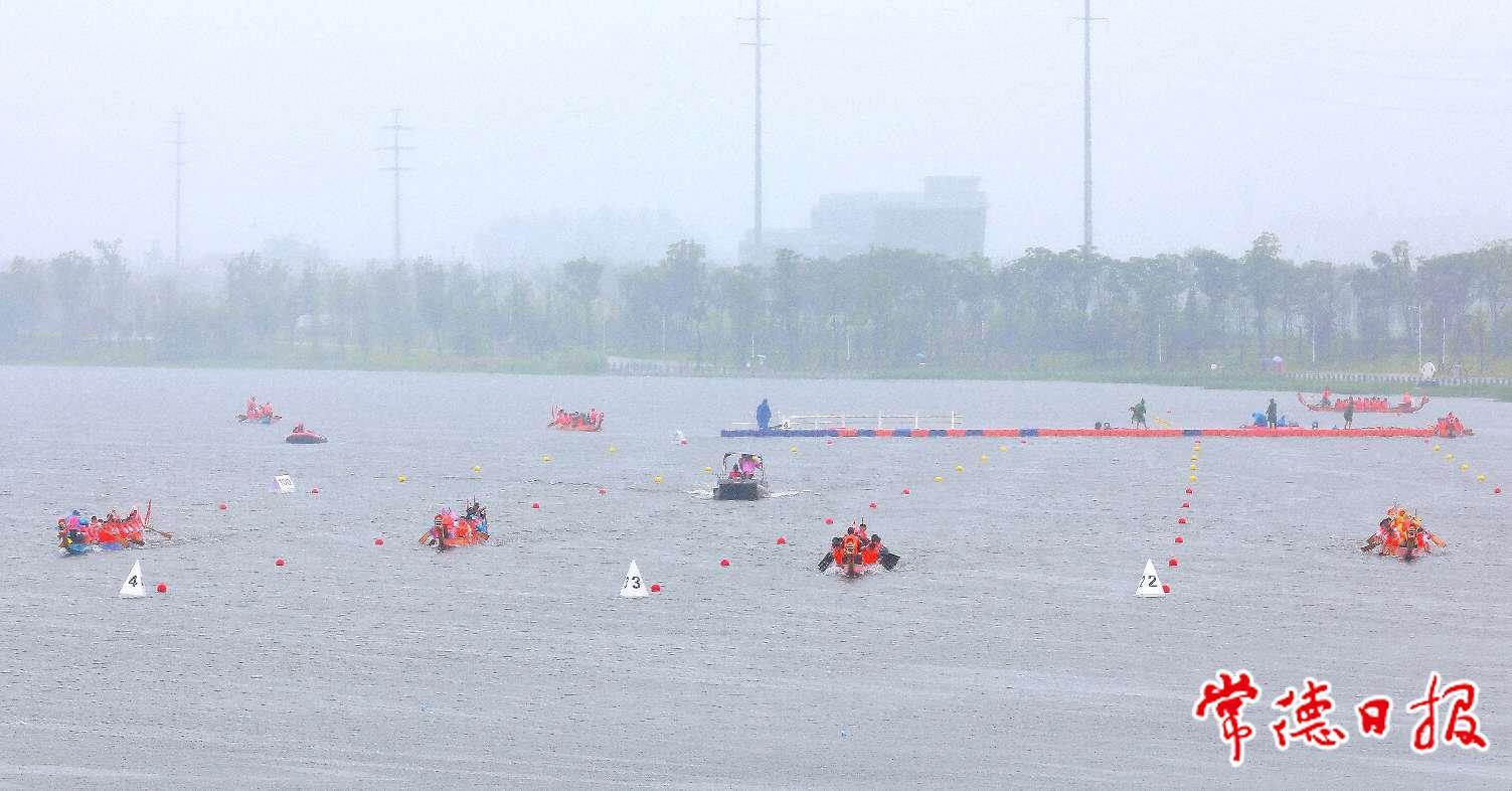 端午竞渡 龙跃鼎城 首届阳明湖龙舟赛雨中开赛