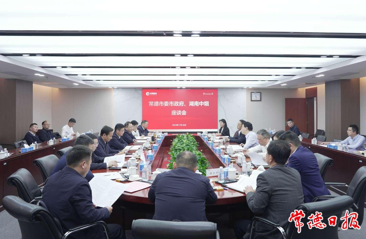 11月20日下午,市委书记曹志强,市委副书记、市长周振宇带队前往长沙,专程拜访湖南中烟工业有限责任公司,与该公司党组书记、总经理籍涛等公司高管座谈交流,进一步加强沟通对接,深化交流合作,推动常德经济社会高质量发展。