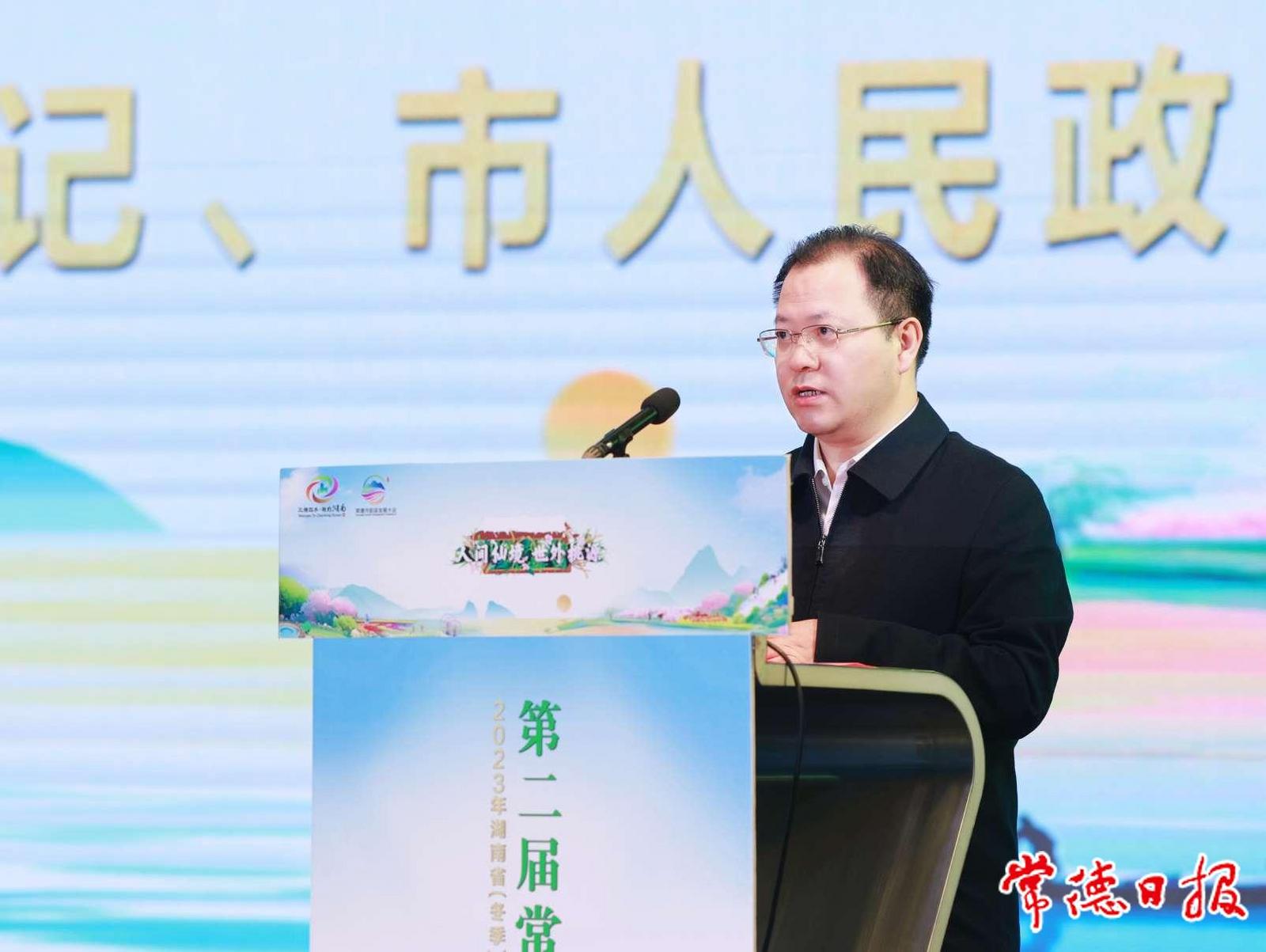 周振宇代表十大彩票网赌平台委市政府和全市人民,向出席大会的各位领导、各位嘉宾表示热烈欢迎,向长期以来关心支持常德经济社会发展的各界朋友表示衷心感谢。他说,冬日虽至,沅澧大地依旧温暖如春。走进桃花源里,感受历史厚度、文化深度、烟火温度,感受山水隽美、乡村和美、城市精美,感受最大诚意、最优服务、最佳环境。他表示,常德将以此次活动为新的起点,深入学习贯彻习近平总书记关于文旅融合发展的重要论述,把文旅产业作为重点支柱产业来抓,扎实做好文化旅游融合发展的大文章,研发新产品、探索新模式、构建新业态、创造新环境,敞开大门迎接四海来客,努力让乡村“美”起来、城市“动”起来、文化“活”起来、旅游“火”起来,把常德这座桃花源里的魅力城市打造成为国内外游客“常来常往、常来常想、常来常乐”的心灵故乡。