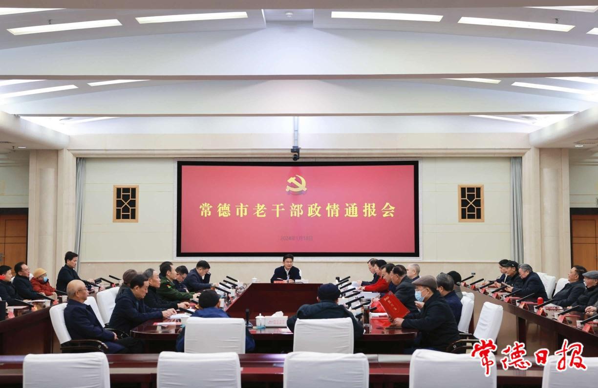 政情通报会上,曹志强代表市委、市人大常委会、市政府、市政协、常德军分区对各位老领导、老同志长期以来给予市委市政府工作的支持和关心表示衷心感谢。他说,2023年,全市以顽强的斗争精神积极应对困难挑战,一场战斗接着一场战斗打,重点打好了突破突围的“开局仗”、化解问题的“攻坚仗”、为民造福的“主动仗”、从严治党的“持久仗”,以最大努力争取了最好的结果。踏上新时代新征程,常德面临一系列重大机遇和有利条件,正处于突破突围、大有作为的关键时期,市委市政府有决心、有底气团结带领全市上下开创常德更加美好的未来。