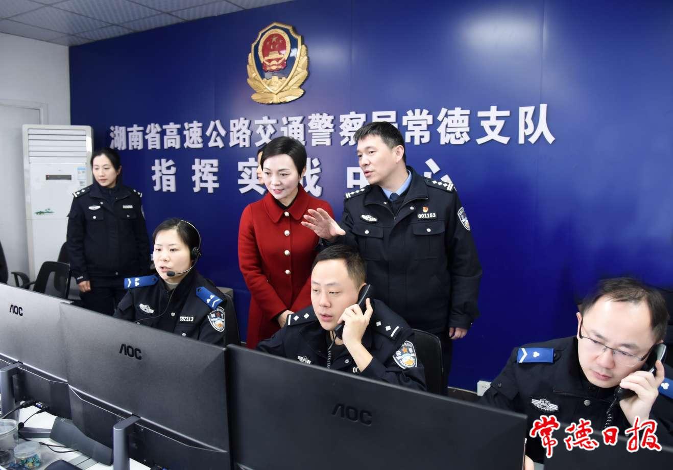 杨成英一行首先前往市春运办。今年春运启动以来,市春运办主动作为,积极协调,在春运保通保畅尤其是应对低温雨雪冰冻天气中发挥了重要作用。杨成英看望慰问了市春运办工作人员,勉励他们继续努力,做好节后春运工作。随后,杨成英一行前往常德汽车总站、常德火车站,详细了解春运车站运行情况,并前往车站候车大厅实地查看,和旅客亲切交流。她要求车站做好春运服务保障工作,展示常德良好的“窗口”形象。在省高警局常德支队指挥实战中心,杨成英查看了常德境内高速公路及服务区监控实况。她充分肯定了常德高速交警的付出,对交通交警路地联合、团结协作的做法表示赞赏,并对工作人员送上了新春祝福。她指出,春运仍在继续,希望省高警局常德支队继续发扬拼搏精神,力保今年春运工作圆满完成。