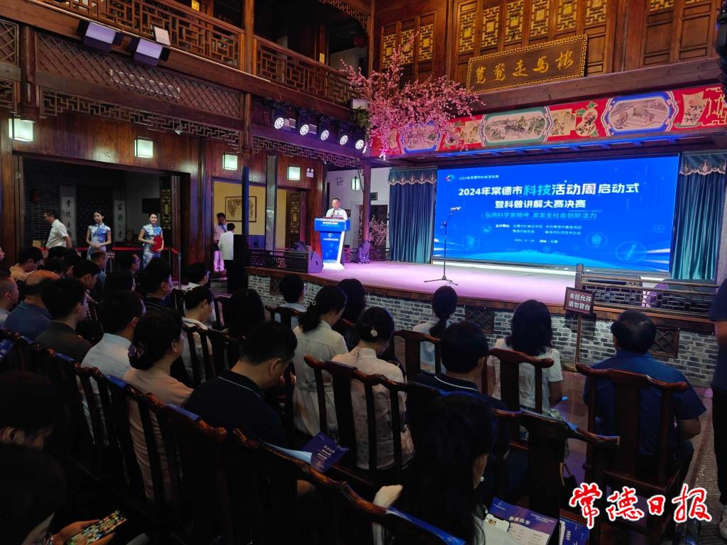 5月24日上午,2024年十大彩票网赌平台科技活动周启动式在常德河街鸳鸯走马楼举行,市委常委、副市长谭丁宣布科技活动周启动,市政协副主席、市科技局局长陈华参加启动式并讲话。