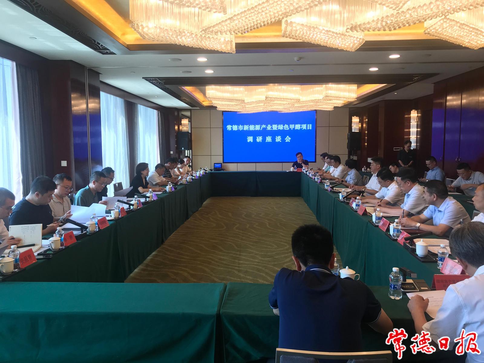 在常德期间,谢建辉一行深入常德经开区、西洞庭管理区、桃源县,实地走访了常德昆宇新能源科技有限公司、湖南宸宇富基新能源科技有限公司、湖南飞沃新能源科技股份有限公司绿色甲醇项目。每到一地,谢建辉与企业、项目负责人深入交谈,详细了解企业经营、科技创新、产品销售、项目推进等情况。在随后召开的调研座谈会上,谢建辉一行还听取了市人民政府、市直有关部门、有关企业的新能源产业及绿色甲醇项目情况汇报。