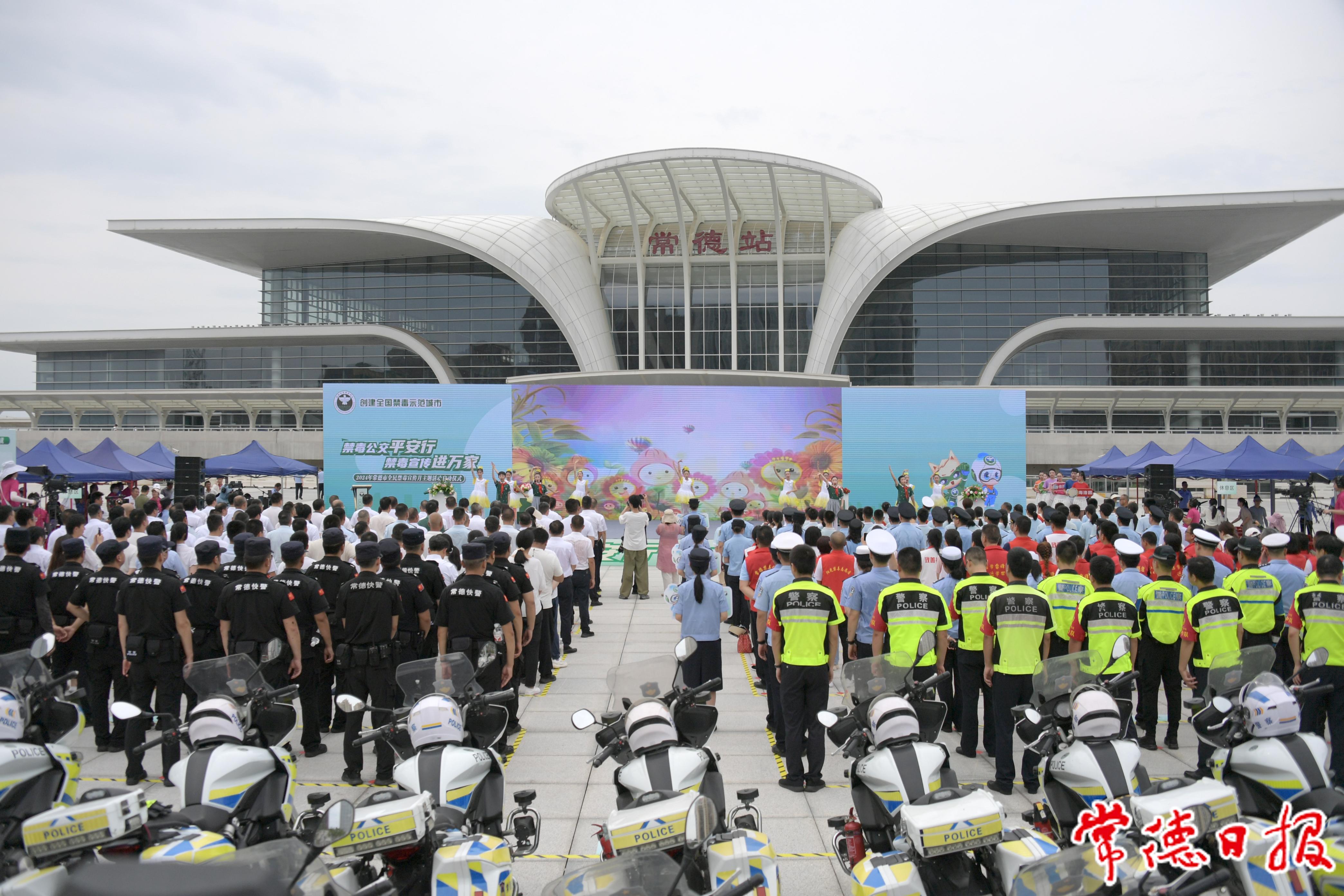 启动仪式上,常德禁毒形象大使集体宣读禁毒倡议书并展示禁毒书法作品。仪式结束后,禁毒形象大使和志愿者分别带领中学生走上禁毒主题公交车,开展禁毒宣传。