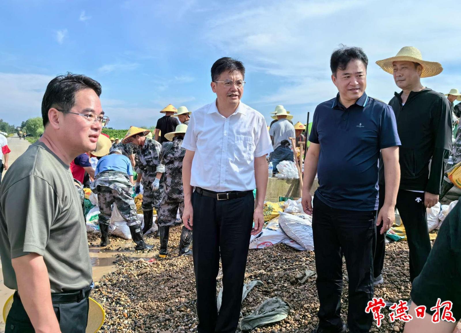 在汉寿县沅南垸新兴嘴鲁家河堤段、武陵区芦荻山乡沅水大堤毛坪里段、鼎城区八官垸肖家湾堤段,罗毅君走上防洪大堤,看望慰问在一线奋战的防汛抗灾人员,实地察看险情处置、水位水情等情况,并与相关负责人面对面交流,详细了解巡查值守、物资储备、抢险救援等情况。他指出,当前防汛抗灾已经进入最吃劲、最关键的时刻,全市上下要在思想认识上再提升,进一步强化“时时放心不下”的责任感,坚决把确保群众生命安全放在首位,抓紧全面排查整治薄弱环节,全面落实各项防汛抗灾措施,团结一致、一鼓作气,奋力夺取防汛抗灾全面胜利。要按照应急预案要求,进一步压紧压实防汛工作责任,加强值班值守,严明防汛纪律,做到人员到位、责任到位、措施到位,以扎实有效的工作确保安全度汛。要紧盯重要堤防、险工险段、薄弱环节,坚持人防、物防、技防相结合,强化巡堤查险力度,增加巡堤查险频次,及时科学处置各类险情,做到处早、处小、处了,切实保障人民群众生命财产安全和社会大局稳定。