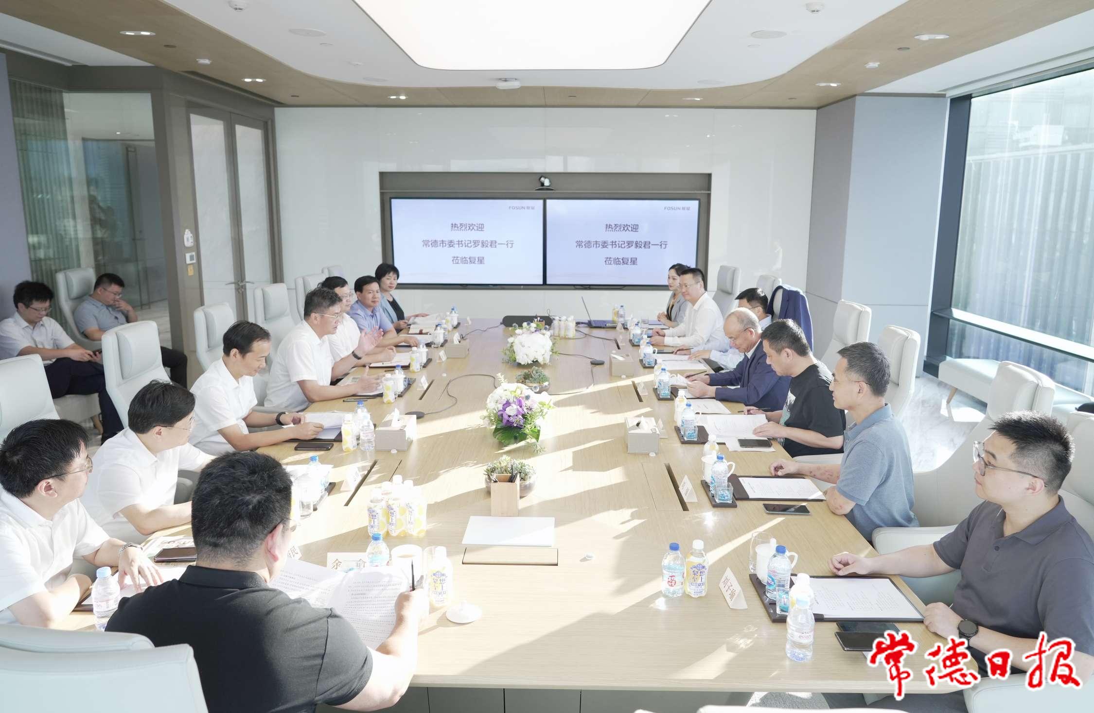 复星国际有限公司创建于1992年,经过30多年发展,已成为一家创新驱动的全球家庭消费产业集团,旗下业务包括健康、快乐、富足、智造四大板块。罗毅君与复星国际董事长郭广昌就加快常德原料药产业、文化旅游产业发展等事宜座谈交流,并简要介绍了常德经济社会发展情况。他说,复星旗下很多产业和常德未来发展方向、资源禀赋等方面有契合之处,双方合作空间广阔、潜力无限。罗毅君希望加快推进常德原料药生产基地建设,推动全产业链高质量发展;加强双方沟通对接,拓宽合作领域,在生物制造、文旅康养、市场开拓等方面开展多领域深层次合作,赋能地方高质量发展。