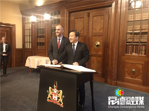 受贝利特·奥奈伊市长邀请,曹立军在汉诺威城市金书上欣然题词:愿常德和汉诺威友谊长存。曹立军热情邀请贝利特·奥奈伊先生访问常德,他说,现在的常德汉诺威街上不仅有德式咖啡、德国家具、播放德国电影等,今后还会增加更多的德国元素,吸引更多富有活力的创新创业团队和经营业态进驻,汉诺威大街会更加热闹起来。