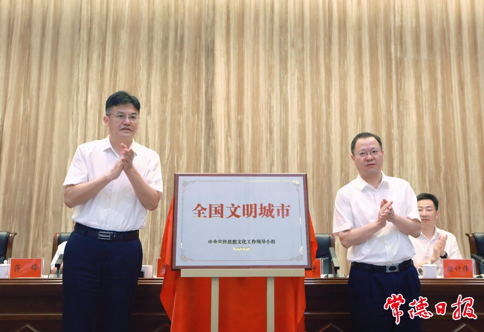 为“全国文明城市”牌匾揭牌