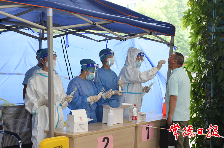 邹文辉一行首先来到武陵区府坪街道方家巷社区居民核酸检测现场。记者看到,该社区居民正分批排队等待核酸检测,现场工作人员按照相关流程标准登记居民健康码和身份信息,医护人员逐一进行采样操作,整个检测工作规范有序。邹文辉指出,针对当前检测量大、时间紧、任务重的客观现实,全市要统一调配检测力量,确保做到应检尽检、日采日清。