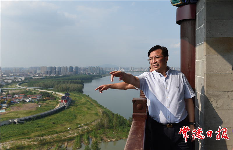 邹文辉在孤峰公园从高处眺望常德水系分布情况