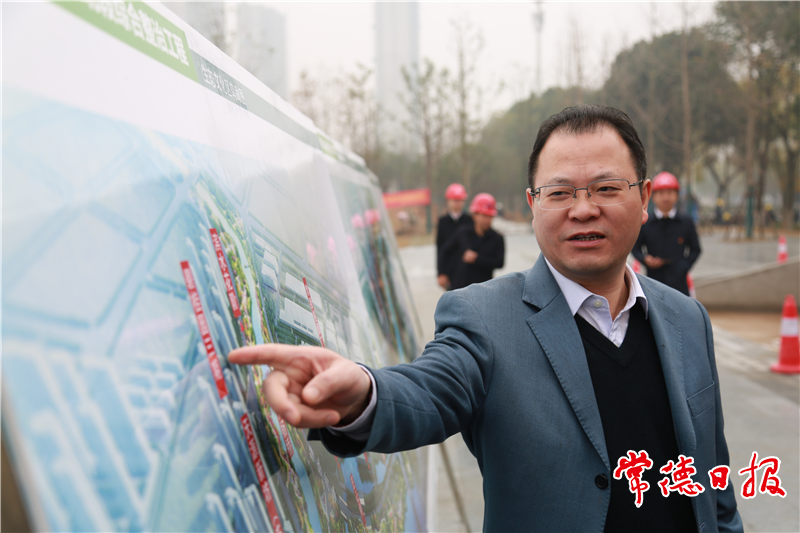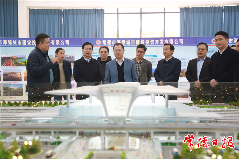 周振宇在沙盘前了解常德高铁站整体规划建设情况