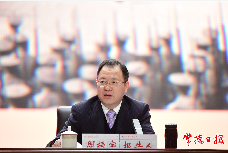 昨日,市委副书记、代市长周振宇前往湖南文理学院作形势与政策报告。他结合党的十九届六中全会精神和省第十二次党代会部署要求,以“勿忘苦难辉煌,无愧使命担当,不负伟大梦想”为主题,围绕“百年辉煌”“百年变局”“百年奋斗”三个关键词,通过生动的语言、形象的事例,与现场师生进行了交流探讨,勉励青年学子要深学笃行党的十九届六中全会精神,传承红色基因,争做时代新人,成就出彩人生。