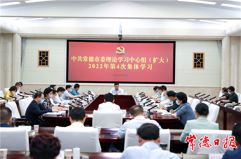 4月24日下午,市委理论学习中心组(扩大)举行2022年第4次集体学习,邀请省生态环境厅党组书记、厅长邓立佳,湘潭大学党委副书记、博士生导师廖永安教授,分别作学习贯彻习近平生态文明思想、习近平法治思想辅导报告。市委书记曹志强主持学习并讲话。市委副书记、市长周振宇参加学习。