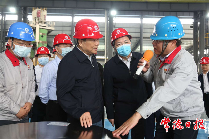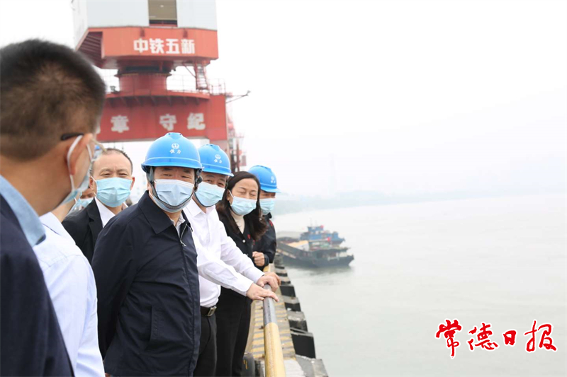 在常德经开区,陈飞一行先后前往常德港德山港区、武陵酒提质改造项目、湖南湘投金天钛业科技有限公司调研。在常德港德山港区,陈飞指出,要充分挖掘和发挥常德的水运优势,大力发展常德港口事业,进一步推动常德的外向型经济发展。在武陵酒提质改造项目,陈飞叮嘱企业负责人,要瞄准市场需求,不断提升酿酒技术,提升产品品质,开发出更符合消费者需求的白酒产品。在湖南湘投金天钛业科技有限公司,陈飞详细了解了企业生产经营情况,他指出,要进一步强化现代企业理念,加强人才队伍培养,瞄准市场需求、对标世界一流,加大关键核心技术攻坚力度,以创新引领推动企业不断发展壮大。