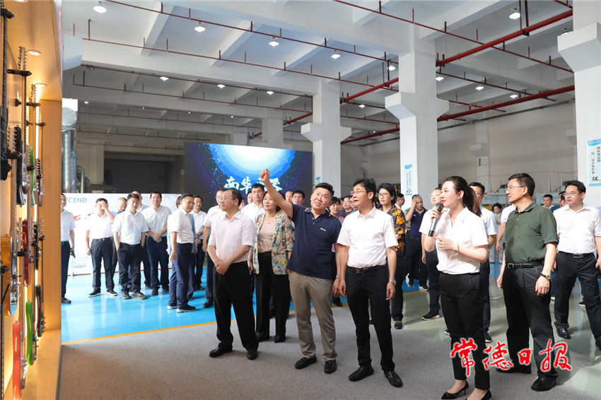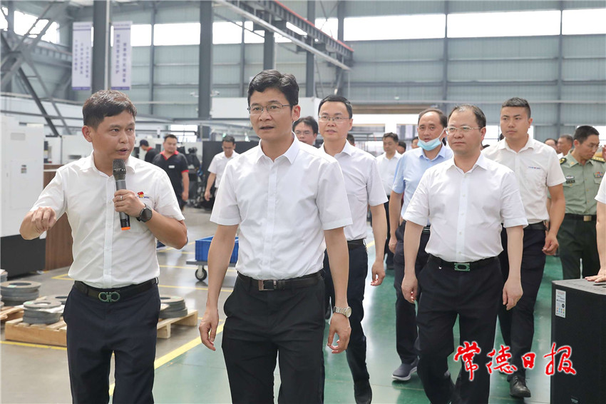 当天,曹志强、周振宇一行先后前往武陵区、常德经开区、汉寿县、桃源县、鼎城区、常德高新区和临澧县等地,实地观摩“五好”园区建设、产业项目发展,考察了湖南天海电器有限公司,湖南金立星机械科技有限公司铝门窗、幕墙、高铁机械研发生产项目,常德云港生物科技股份有限公司原料药生产项目,湖南智见园区管理服务有限公司磁性材料产业园项目,康普生物医药产业园项目,湖南康泽新材料科技有限公司软包装生产线建设项目,湖南蓝鹰工程机械有限公司工起塔基配件生产项目,湖南飞沃新能源科技股份有限公司高强度紧固件智能制造二期项目,湖南万大机械制造有限公司,捷芯集成电路封装基地项目,湖南沃晟凯科技有限公司,湖南南华乐器有限公司,湖南安福环保新材料循环产业园三期项目和湖南星科液压油缸智能制造项目。