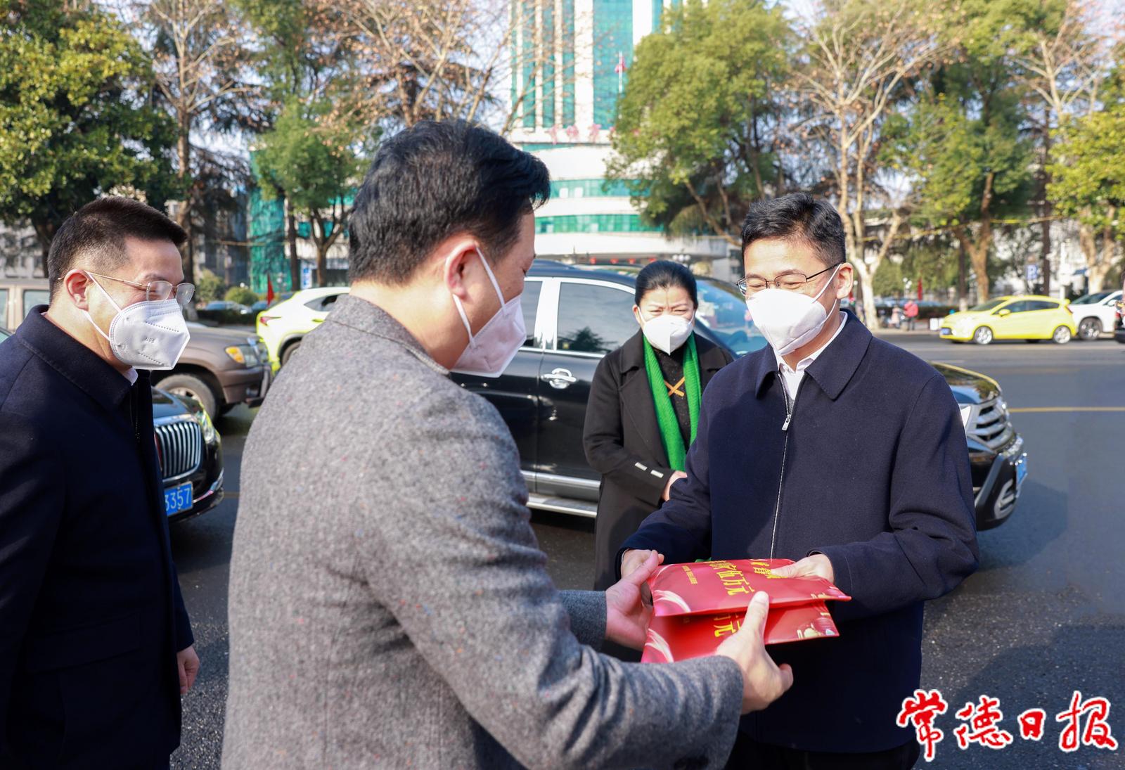 在新春佳节来临之际,带着市委、市政府的深深牵挂与祝福,1月19日上午,市委书记曹志强,市委副书记、市长周振宇带队专程慰问了军队离退休干部、武警官兵、公安交警、城管队员、环卫工人、消防指战员以及新闻工作者,感谢他们过去一年对常德经济社会发展付出的辛勤劳动,通过他们向全市人民拜年,并致以最美好的节日祝福。