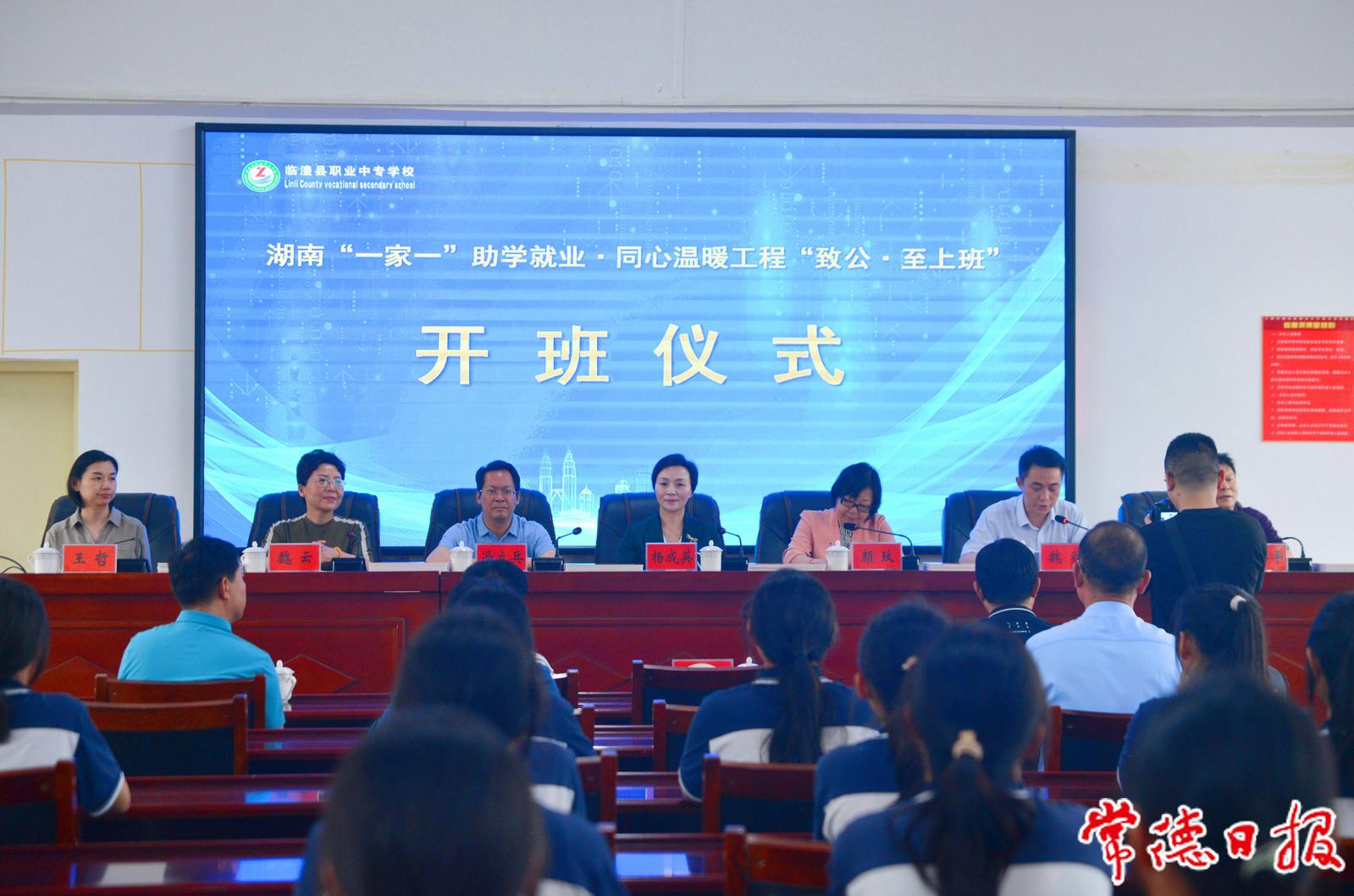 日前,湖南“一家一”助学就业·同心温暖工程“致公·至上班”开班仪式在临澧县职业中专学校举行。副市长、致公党十大彩票网赌平台委会主委杨成英,湖南中华职业教育社秘书长冯立兵出席开班仪式,并为该班授牌。