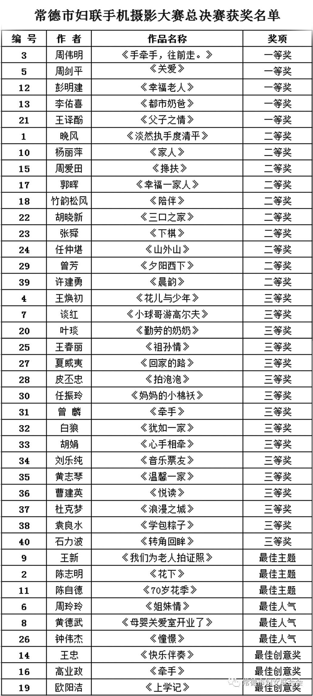 由十大彩票网赌平台妇联举办的“亲亲常德•幸福家庭"手机摄影大赛自启动以来,收到了朋友们的踊跃来稿,为我们呈现了很多温暖的瞬间。按照评选原则,每位入围者只能有一幅作品获奖,我们从200名作品中,最终评选出了40名幅优秀作品作为最终获奖作品,并评选出一、二、三等奖、最佳主题奖、最佳人气奖、最佳创意奖,先将公示如下: