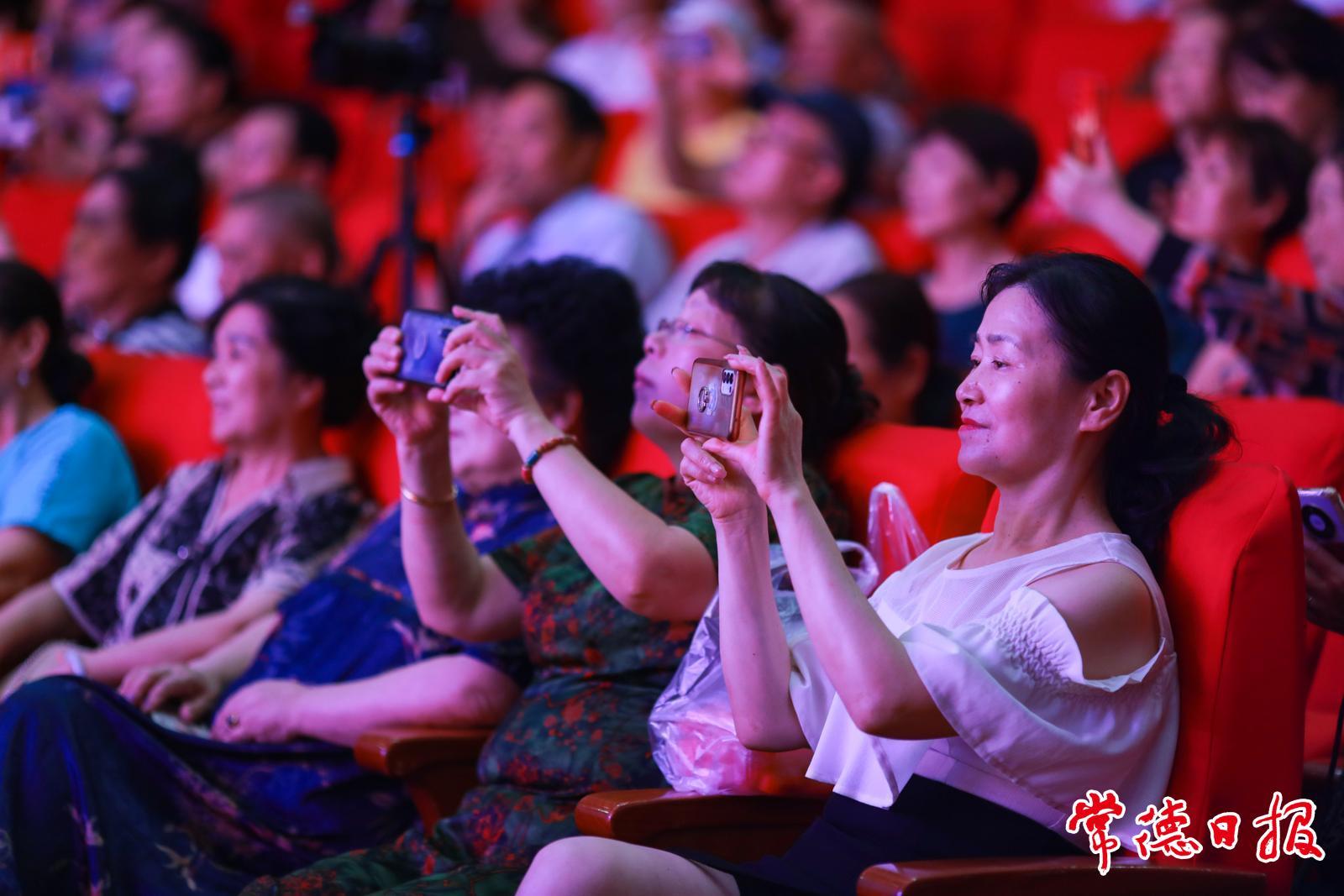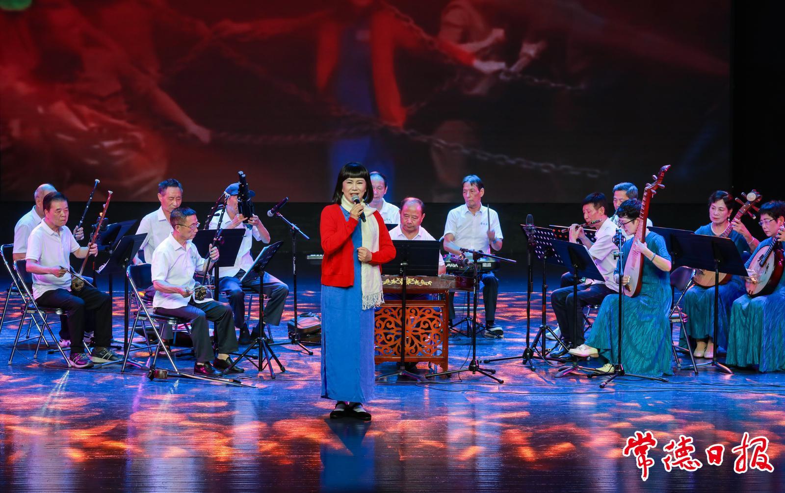 演出在激昂的管弦乐《迎宾进行曲》中拉开序幕。合唱《祖国颂》气势恢宏,男女声对唱《春风十万里》情真意切,舞蹈《再唱山歌给党听》舞姿优美。具有浓郁地方特色的常德丝弦《常德米粉歌》和原创歌伴舞《美丽的穿紫河》,生动展现了本土文化魅力。抗战题材节目同样引人入胜,《地道战》器乐合奏、《微山湖》歌曲联唱以及男声小组唱《弹起我心爱的土琵琶》,赢得观众阵阵热烈掌声。女声独唱《我为共产主义把青春贡献》、舞蹈《永远的赞歌》等节目,充分展现了演员们的艺术造诣。